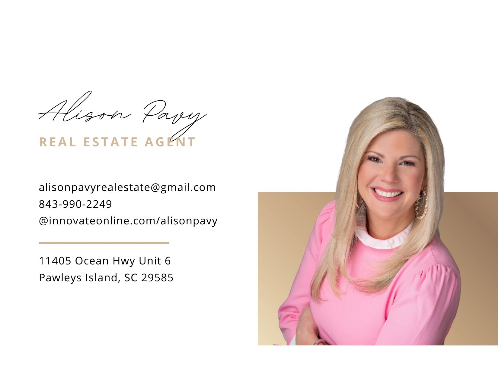 Alison Pavy is a native South Carolinian; growing up in the Midlands and attending the University of South Carolina. Alison feels very blessed to be able to reside in one of the most beautiful places, Pawleys Island, SC since 2012. Alison is a seasoned realtor with a background in sales, bringing a wealth of knowledge and expertise to the real estate market. With a foundation in construction sales, Alison possesses an understanding of building materials, craftsmanship, and construction processes, providing a unique advantage in real estate. Alison implements an interactive approach with her clients in order to walk them through the buying and selling process every step of the way. Alison’s priority is to understand the needs of her buyers and guarantee a smooth and personalized experience. Buying or selling a home is a very big decision and she wants the experience to be fun and as stress-free as possible. Alison resides in Pawleys Island with her husband William Pavy, her son Wills Pavy and her daughter Allyne Langston Pavy. In her free time, Alison enjoys spending time on the beach with family and friends. Contact her today to start your real estate journey.